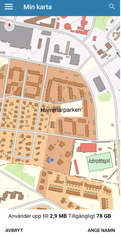 Once you have selected your area, press "Enter name". Now you get to name the map of the area you chose to download. The app provides a name suggestion based on the area centered in the map. Press "Download Map" to complete the process.