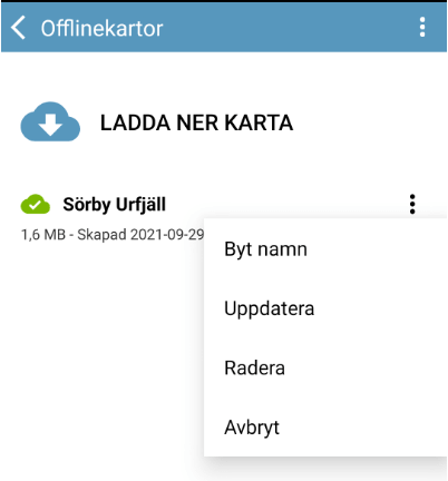 If you press the menu button to the right of a saved map, you can edit its name, update the material so that it is renewed if the Land Survey has made changes since you made the download, or delete the map.