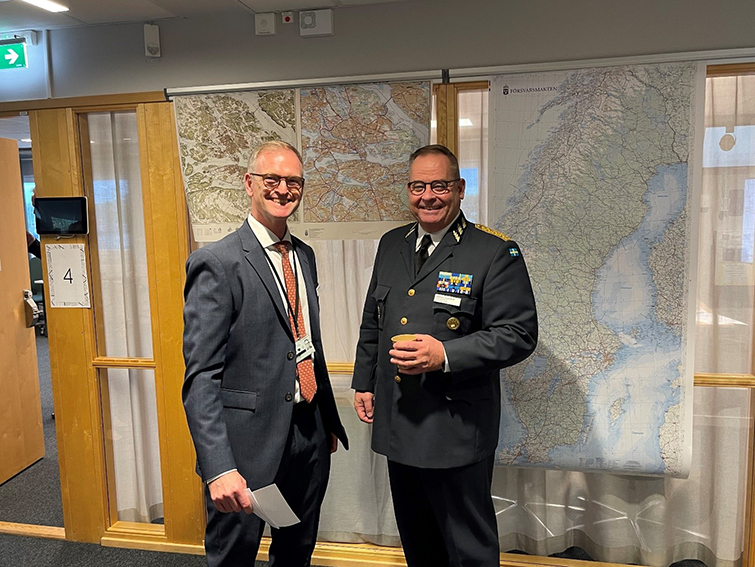 – Grattis till 25 år och ett varmt tack för det fantastiska arbete ni genomför och för det ni investerar i kraft, kunskap och kompetens i att leverera förutsättningar för att försvara vårt land. Lantmäteriet bidrar varje dag till att öka vår operativa förmåga, säger Överbefälhavare Michael Claesson, Försvarsmakten.